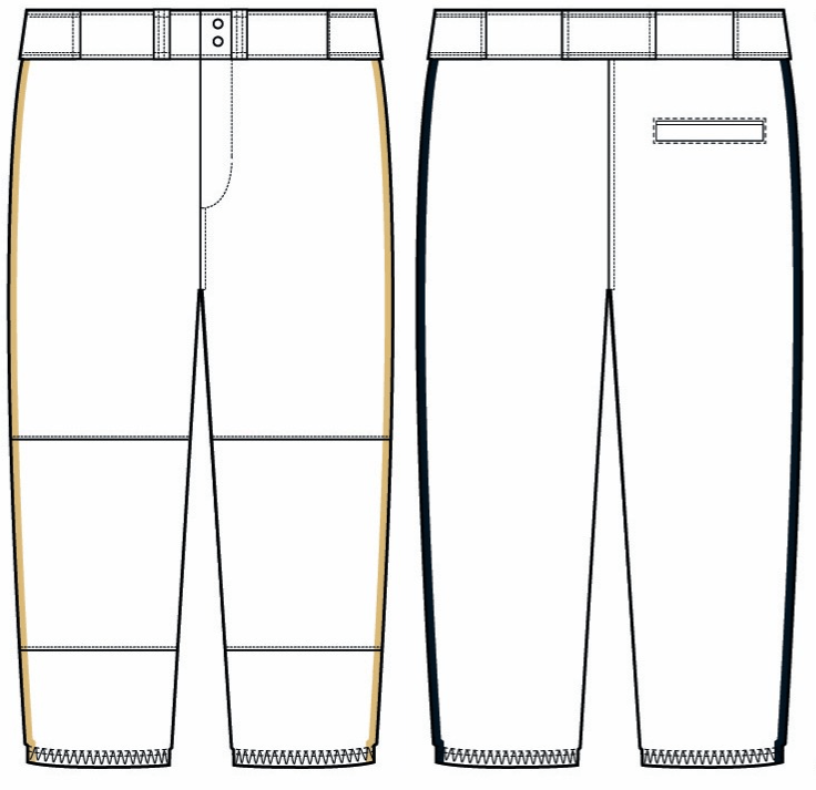 Stock polyester pants available in knicker or full length. Optional sewn-on side braid.