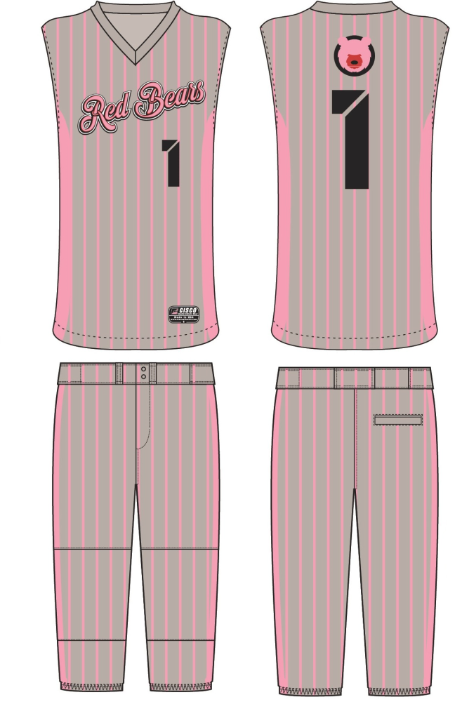 Custom sublimated sleeveless pullover and custom mid-calf pants.