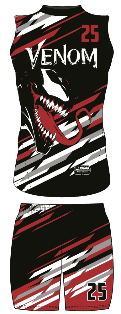 Custom sublimated sleeveless compression jersey and matching compression shorts.