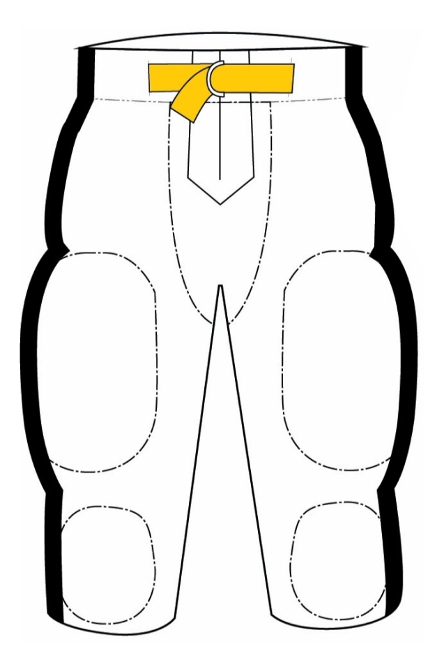 Solid-color stock football pants. Shown with sewn-on, 2” side braid.