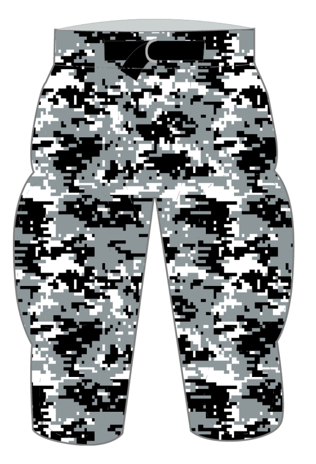 Custom sublimated Lycra football pants with knee and thigh pad pockets.