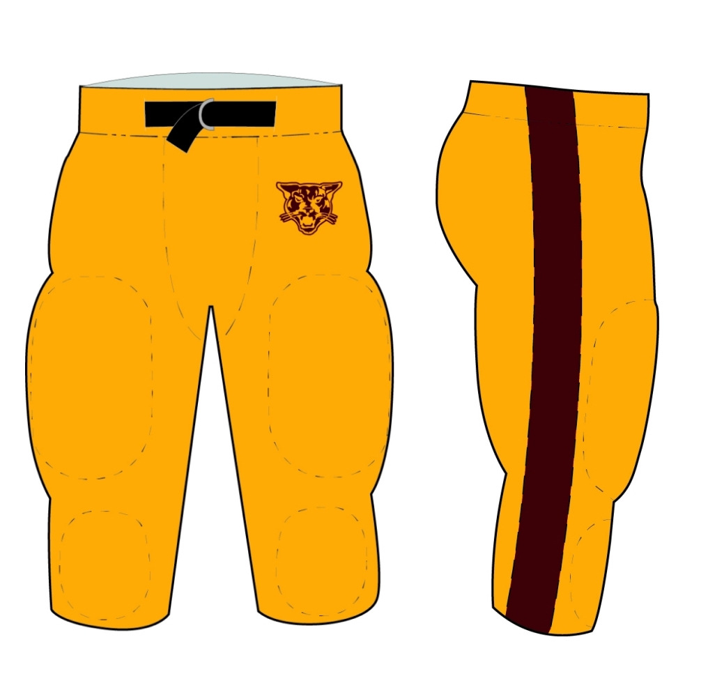 Custom sublimated Lycra football pants with knee and thigh pad pockets.