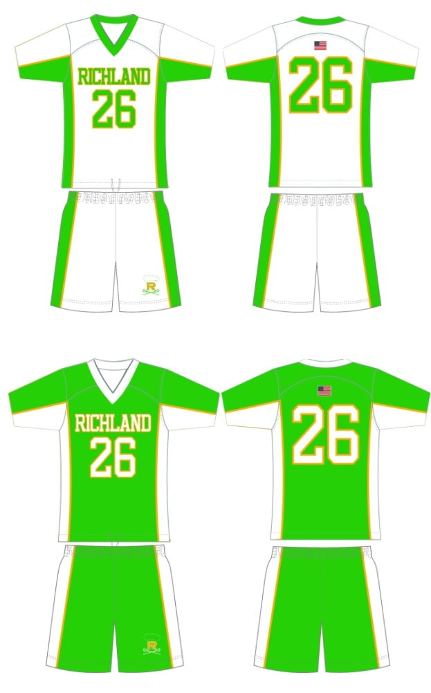 Custom sublimated reversible lacrosse jersey with matching reversible shorts. Constructed of 2-ply lightweight Dry Wick.