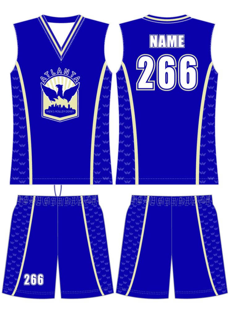 Custom sleeveless jersey with matching shorts. Constructed of Dry Wick.