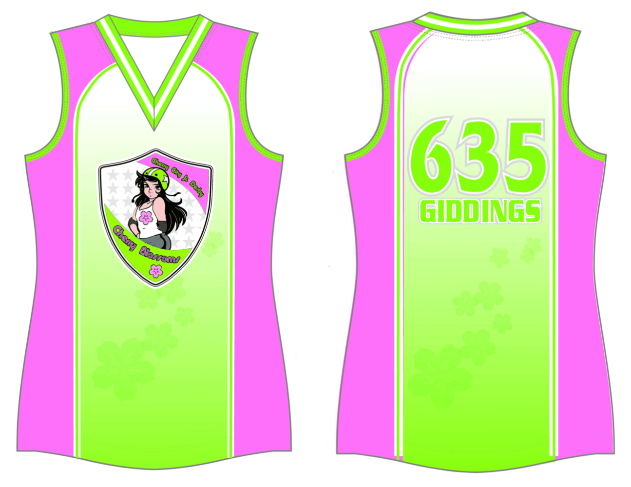 Custom sublimated sleeveless derby jersey. Available in several fabrics.