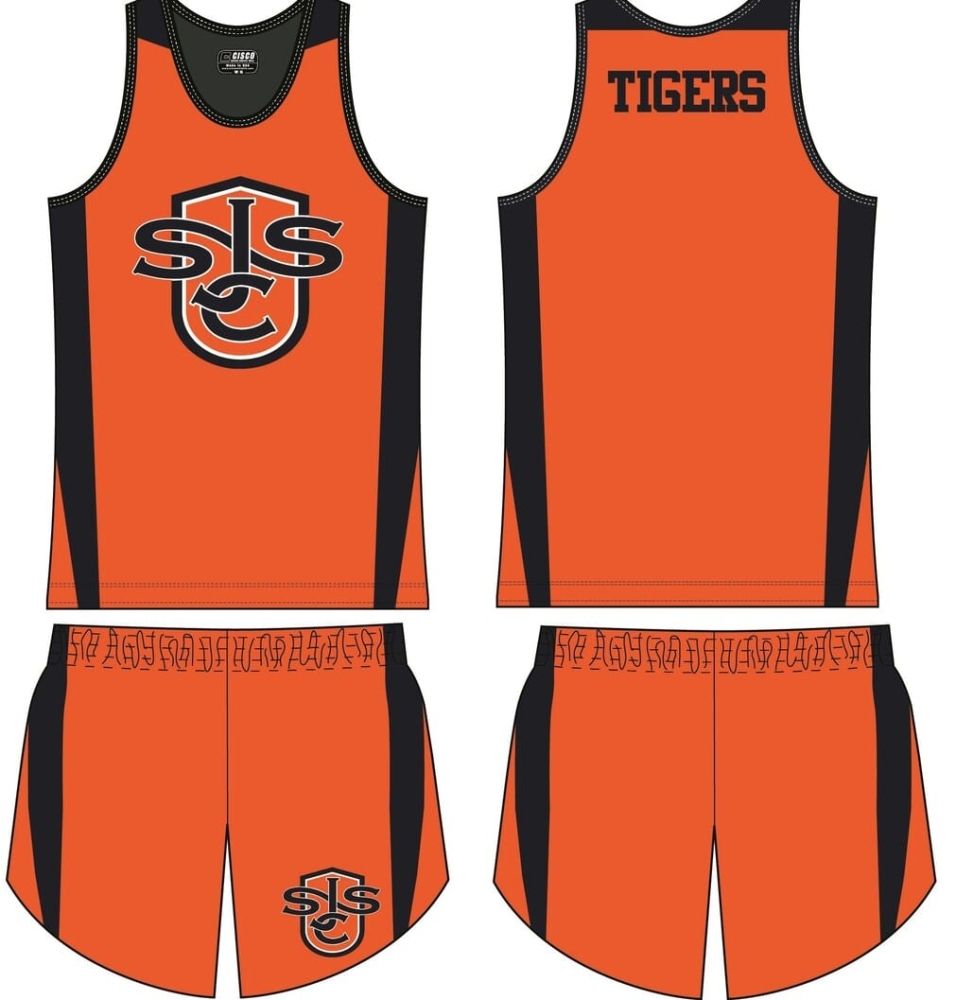 Custom sublimated loose fit track jersey and shorts. Constructed of our special lightweight track tricot fabric.