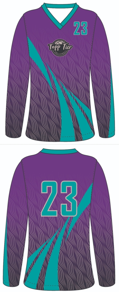 Custom-made, sublimated long-sleeve volleyball jersey.